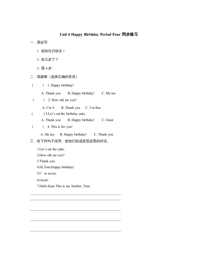 三年级英语上册Unit6《Happybirthday!》第4课时同步练习(人教PEP)admin1月30日 17:28发布关注私信06932三年级英语上册Unit6《Happybirthday!》第4课时同步练习(人教PEP)此内容为付费资源,请付费后查看¥9.9黄金会员免费钻石会员免费立即购买您当前未登录!建议登陆后购买,可保存购买订单格式doc页数2 页大小15.00 KB付费资源 预览已结束,还剩1页未读,开通会员后可免费下载高清完整文档 © 版权声明文章版权归作者所有,未经允许请勿转载。THE END小学英语 喜欢就支持一下吧点赞32 分享QQ空间微博QQ好友海报分享复制链接收藏