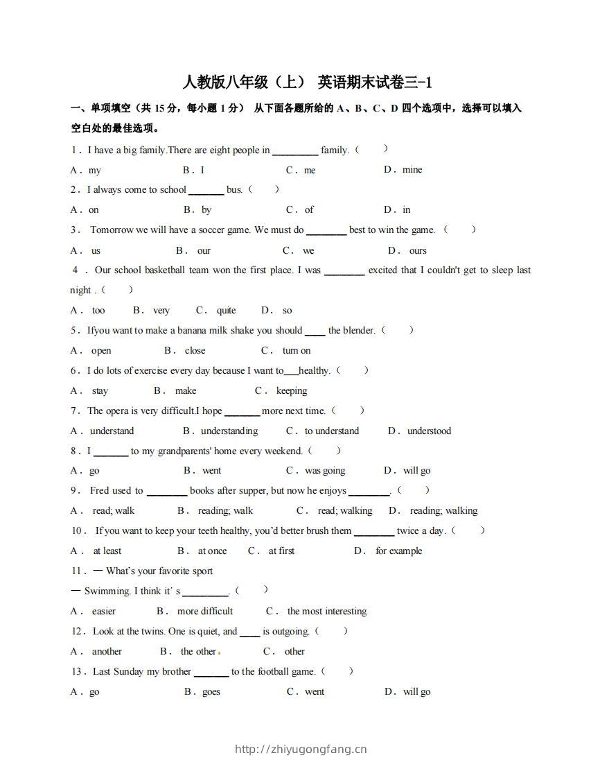 八年级(上)英语期末试卷3-1卷人教版admin11月30日 08:59发布关注私信0387八年级(上)英语期末试卷3-1卷人教版此内容为付费资源,请付费后查看¥10黄金会员免费钻石会员免费立即购买您当前未登录!建议登陆后购买,可保存购买订单格式pdf页数8 页大小432.65 KB付费资源 ——预览已结束,还剩7页未读——开通会员后可免费下载高清完整文档 © 版权声明文章版权归作者所有,未经允许请勿转载。THE END初中英语 喜欢就支持一下吧点赞7 分享QQ空间微博QQ好友海报分享复制链接收藏