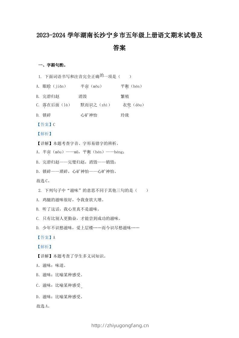 2023-2024学年湖南长沙宁乡市五年级上册语文期末试卷及答案(Word版)admin12月23日 08:03发布关注私信046102023-2024学年湖南长沙宁乡市五年级上册语文期末试卷及答案(Word版)此内容为付费资源,请付费后查看¥10黄金会员免费钻石会员免费立即购买您当前未登录!建议登陆后购买,可保存购买订单格式doc页数13 页大小75.03 KB付费资源 ——预览已结束,还剩12页未读——开通会员后可免费下载高清完整文档 © 版权声明文章版权归作者所有,未经允许请勿转载。THE END小学语文 喜欢就支持一下吧点赞10 分享QQ空间微博QQ好友海报分享复制链接收藏