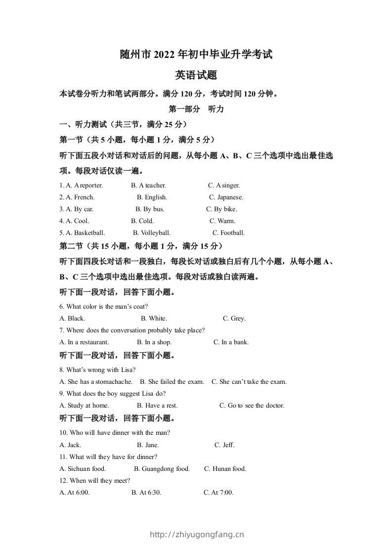 2022年湖北省随州市中考英语真题(含答案)admin12月24日 09:59发布关注私信043132022年湖北省随州市中考英语真题(含答案)此内容为付费资源,请付费后查看¥10黄金会员免费钻石会员免费立即购买您当前未登录!建议登陆后购买,可保存购买订单格式docx页数17 页大小99.63 KB付费资源 ——预览已结束,还剩16页未读——开通会员后可免费下载高清完整文档 © 版权声明文章版权归作者所有,未经允许请勿转载。THE END中考真题 喜欢就支持一下吧点赞13 分享QQ空间微博QQ好友海报分享复制链接收藏