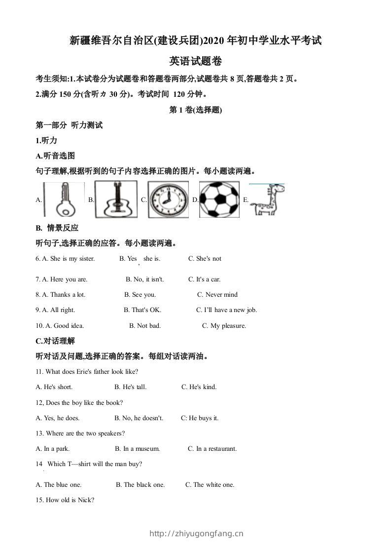 新疆维吾尔自治区(建设兵团)2020年中考英语试题(含听力)(空白卷)admin12月24日 09:59发布关注私信03811新疆维吾尔自治区(建设兵团)2020年中考英语试题(含听力)(空白卷)此内容为付费资源,请付费后查看¥10黄金会员免费钻石会员免费立即购买您当前未登录!建议登陆后购买,可保存购买订单格式doc页数12 页大小273.00 KB付费资源 ——预览已结束,还剩11页未读——开通会员后可免费下载高清完整文档 © 版权声明文章版权归作者所有,未经允许请勿转载。THE END中考真题 喜欢就支持一下吧点赞11 分享QQ空间微博QQ好友海报分享复制链接收藏