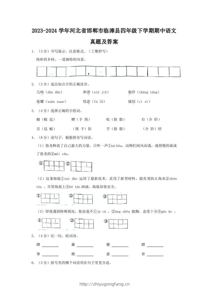 2023-2024学年河北省邯郸市临漳县四年级下学期期中语文真题及答案(Word版)admin12月31日 08:17发布关注私信02182023-2024学年河北省邯郸市临漳县四年级下学期期中语文真题及答案(Word版)此内容为付费资源,请付费后查看¥10黄金会员免费钻石会员免费立即购买您当前未登录!建议登陆后购买,可保存购买订单格式doc页数11 页大小181.00 KB付费资源 ——预览已结束,还剩10页未读——开通会员后可免费下载高清完整文档 © 版权声明文章版权归作者所有,未经允许请勿转载。THE END小学语文 喜欢就支持一下吧点赞8 分享QQ空间微博QQ好友海报分享复制链接收藏