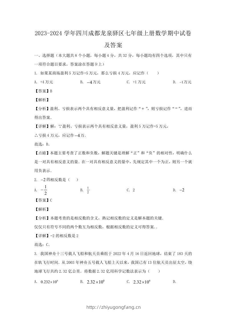 2023-2024学年四川成都龙泉驿区七年级上册数学期中试卷及答案(Word版)admin12月3日 08:32发布关注私信03272023-2024学年四川成都龙泉驿区七年级上册数学期中试卷及答案(Word版)此内容为付费资源,请付费后查看¥10黄金会员免费钻石会员免费立即购买您当前未登录!建议登陆后购买,可保存购买订单格式doc页数20 页大小1.71 MB付费资源 ——预览已结束,还剩19页未读——开通会员后可免费下载高清完整文档 © 版权声明文章版权归作者所有,未经允许请勿转载。THE END初中数学 喜欢就支持一下吧点赞7 分享QQ空间微博QQ好友海报分享复制链接收藏