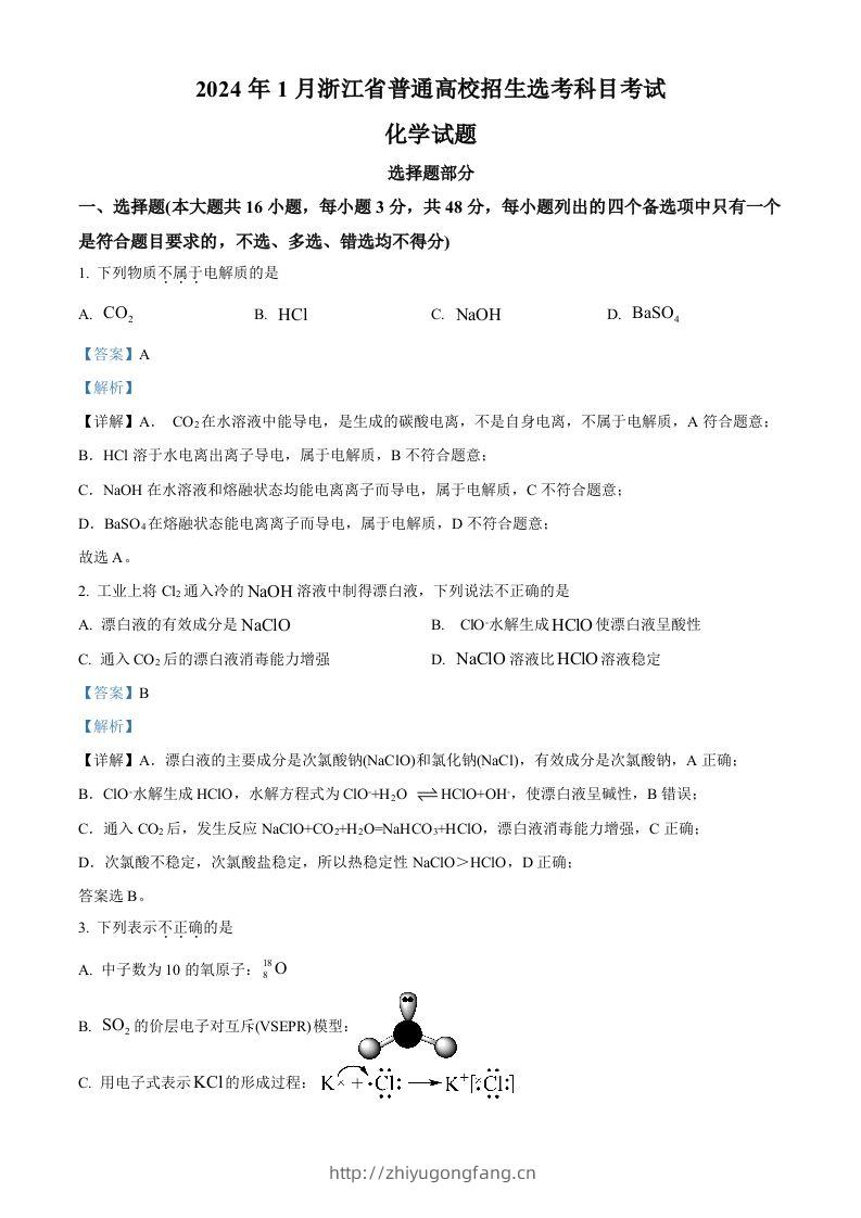 2024年高考化学试卷(浙江)(1月)(含答案)admin12月25日 10:09发布关注私信02462024年高考化学试卷(浙江)(1月)(含答案)此内容为付费资源,请付费后查看¥10黄金会员免费钻石会员免费立即购买您当前未登录!建议登陆后购买,可保存购买订单格式docx页数22 页大小2.91 MB付费资源 ——预览已结束,还剩21页未读——开通会员后可免费下载高清完整文档 © 版权声明文章版权归作者所有,未经允许请勿转载。THE END高考真题 喜欢就支持一下吧点赞6 分享QQ空间微博QQ好友海报分享复制链接收藏