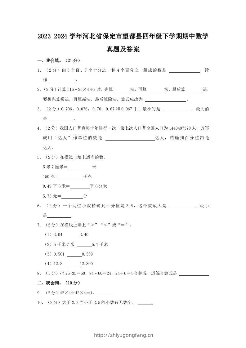 2023-2024学年河北省保定市望都县四年级下学期期中数学真题及答案(Word版)admin12月31日 08:02发布关注私信04852023-2024学年河北省保定市望都县四年级下学期期中数学真题及答案(Word版)此内容为付费资源,请付费后查看¥10黄金会员免费钻石会员免费立即购买您当前未登录!建议登陆后购买,可保存购买订单格式doc页数14 页大小148.50 KB付费资源 ——预览已结束,还剩13页未读——开通会员后可免费下载高清完整文档 © 版权声明文章版权归作者所有,未经允许请勿转载。THE END小学数学 喜欢就支持一下吧点赞5 分享QQ空间微博QQ好友海报分享复制链接收藏